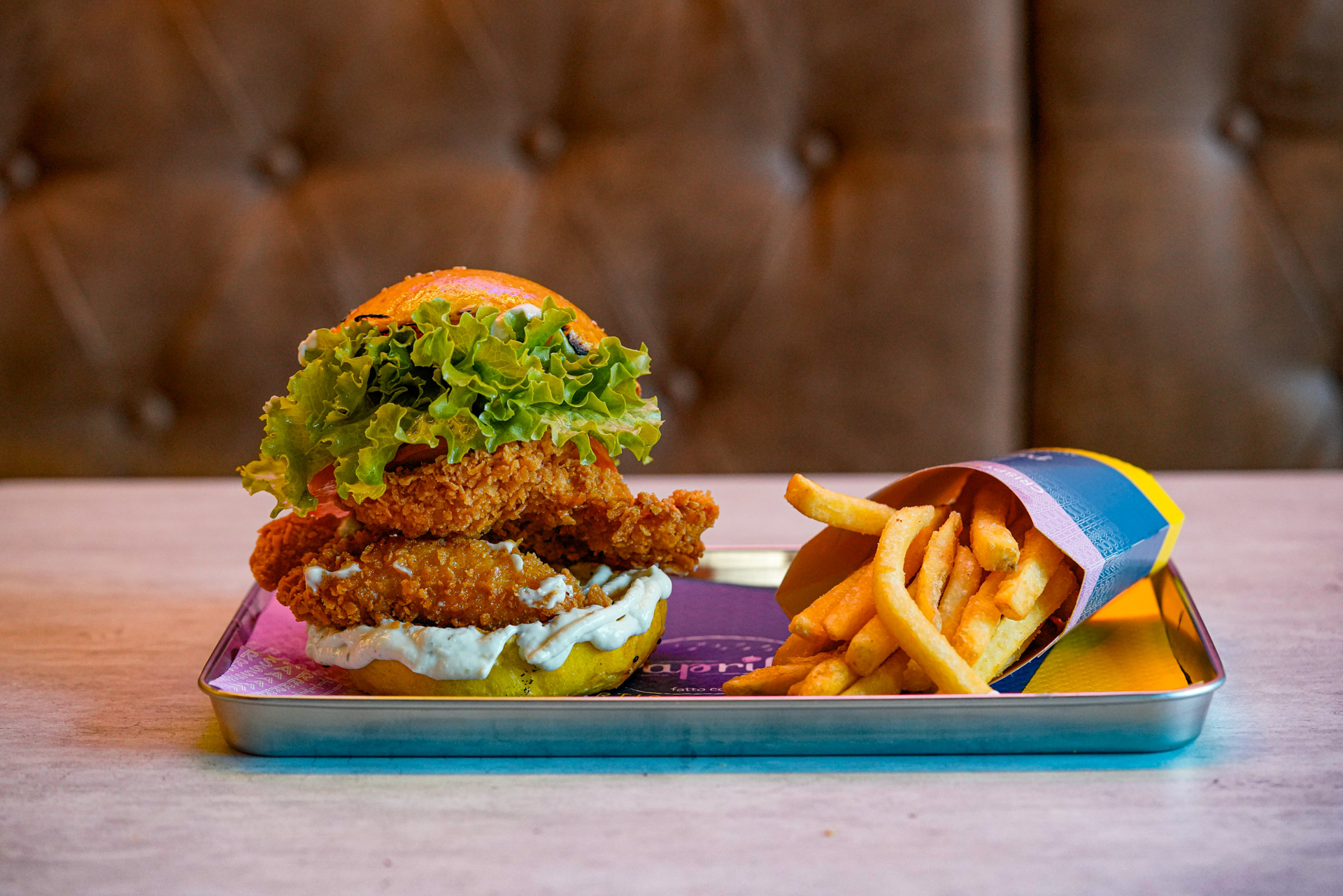 Succoso Pollo fritto super crunchy, salsa Paprika, insalata e pomodoro