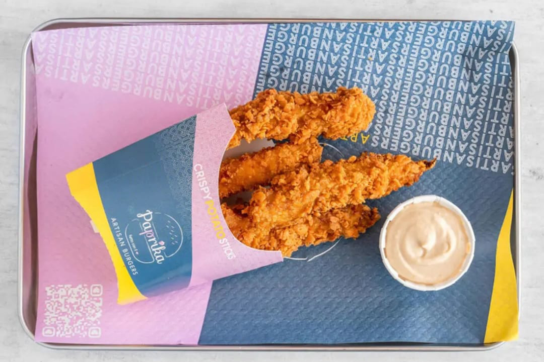 Bastoncini del nostro succulento pollo supercrunchy serviti con salsa Paprika